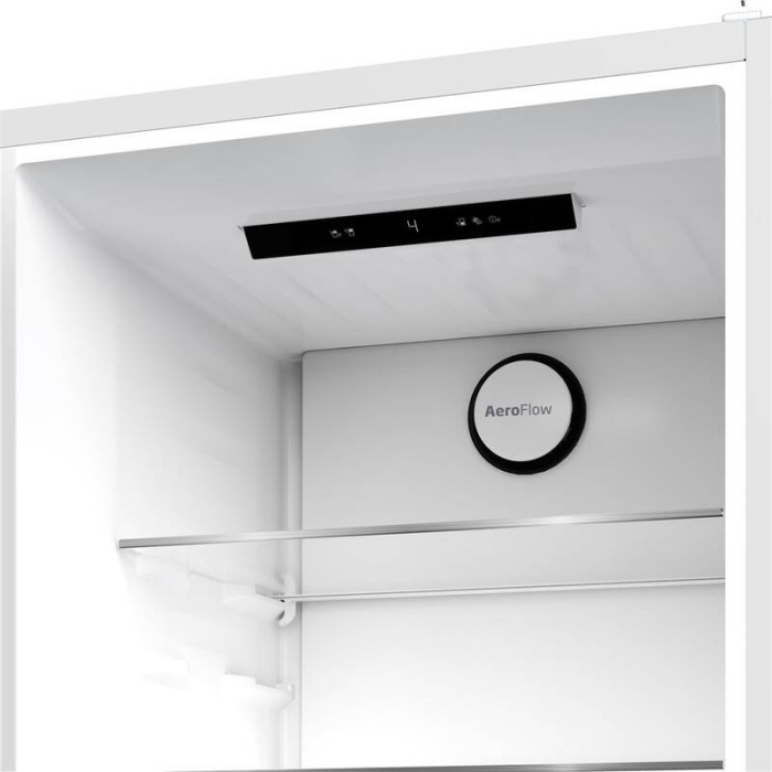 Systém NeoFrost™ zabezpečuje oddelené prúdenie vzduchu medzi chladiacou a mraziacou časťou, čím eliminuje miešanie pachov a tvorbu námrazy. Technológia AeroFlow™ rovnomerne distribuuje vzduch v celom priestore chladničky, čím minimalizuje vysychanie potravín a udržiava stabilnú teplotu bez kondenzácie na zadnej stene.