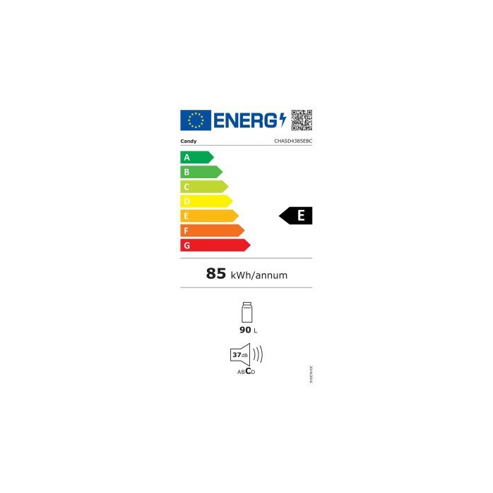 Podľa nového energetického štítku je táto chladnička v triede E. V porovnaní so spotrebičmi triedy F znižuje spotrebu až o 20 %, šetrí energiu, peniaze a rešpektuje životné prostredie.