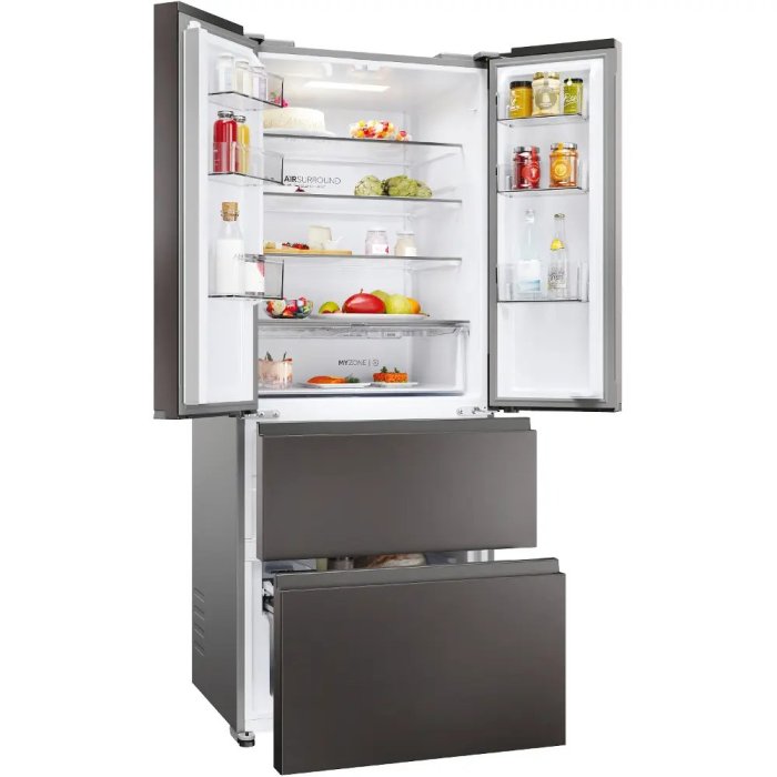 S technologií Air Surround prúdi vzduch okolo chladničky jemnejším a mäkším spôsobom. Vďaka špeciálnym bočným vývodom tento systém homogénne distribuuje studený vzduch obklopujúci potraviny v celom priestore chladničky bez toho, aby došlo k strate hmotnosti a sušeniu potravín. Týmto spôsobom si jedlo zachová svoju chuť, konzistenciu a šťavnatosť až o 99 %* po 7 dňoch ako v deň 1. * Výsledky testov vydané nezávislým externým technickým laboratóriom porovnávajúcim model Haier CFE735CSJ s technológiou Air surround s modelom Haier CVBN6184WBF/S1 s technológiou priameho prúdenia