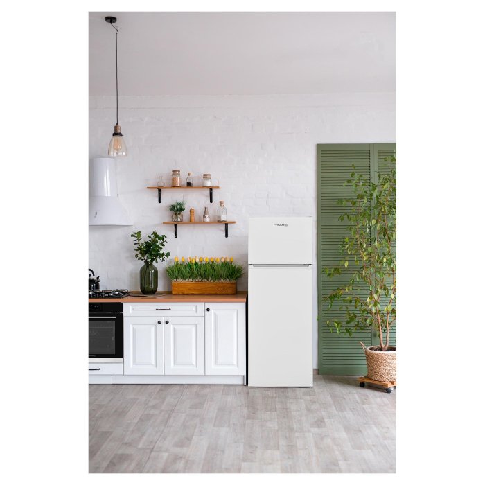 Dvojdverová kombinovaná chladnička Philco PT 213 EMW s mrazničkou v hornej časti, v energetickej triede E, s možnosťou otočenia smeru otvárania dverí a funkciou SuperFreeze rýchleho zamrazovania.