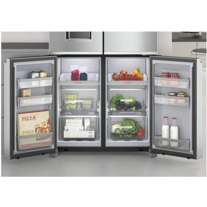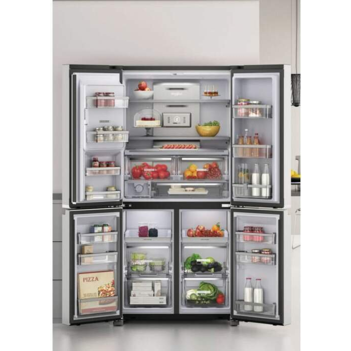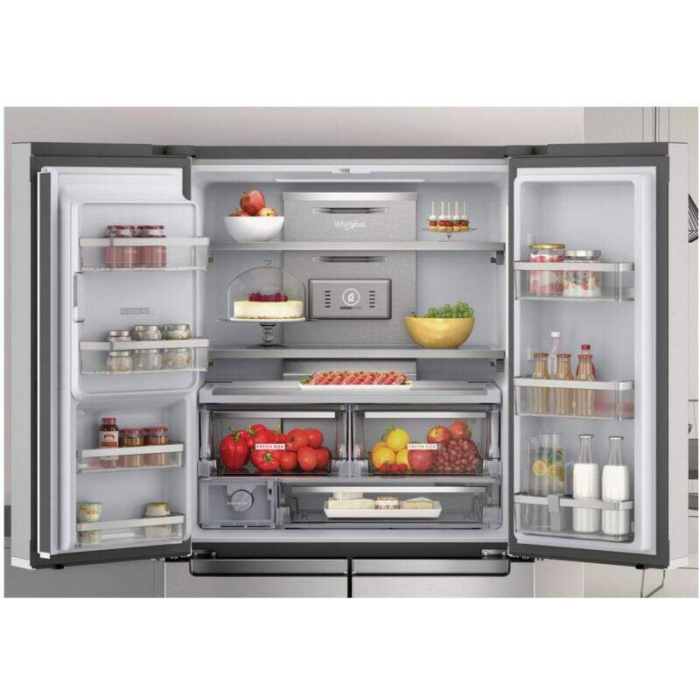 Voľne stojaca 4-dverová chladnička typu side-by-side W19I MO1L v nerezovom vyhotovení s obrovskou kapacitou a beznámrazovou technológiou z dizajnového radu W Collection. Využiteľný objem chladničky v energetickej triede F je rozdelený na 355 l pre chladničku a 237 l pre mrazničku.