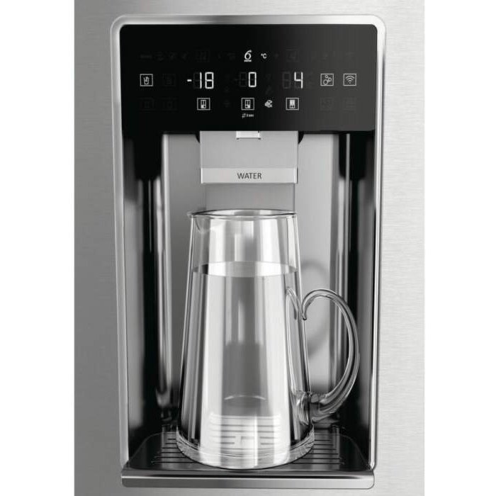 Čierno-biely displej pre jednoduché ovládanie funkcií je umiestnený nad dávkovačom ľadu a chladenej vody.