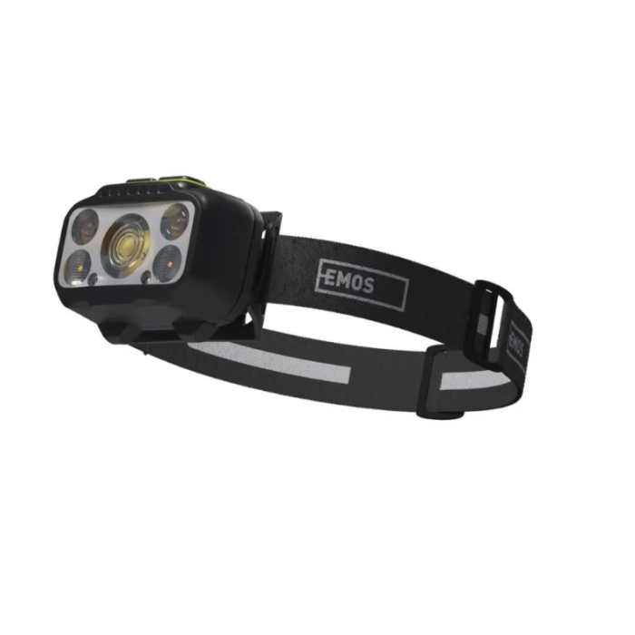 Hybridná čelovka EMOS s výkonom 550 lm, 7 režimami svietenia, USB-C nabíjaním a dosvitom až 110 m pre univerzálne použitie v teréne aj práci.