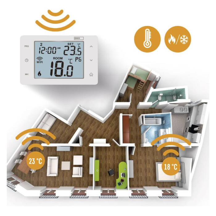 EMOS P56201 zo série EMOS GoSmart je moderný izbový termostat navrhnutý pre efektívne riadenie vykurovania aj chladenia v domácnosti. Vďaka inteligentným funkciám vám pomôže udržať ideálnu teplotu a zároveň optimalizovať náklady na energie.