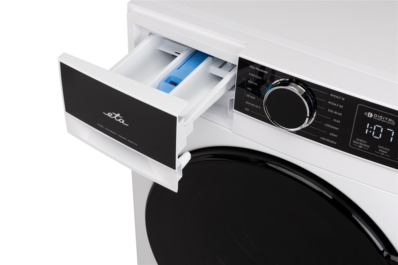 Práčka ETA 387290000A ponúka kapacitu 8 kg, úspornú energetickú triedu A a výkonné odstreďovanie až 1400 ot./min. Vďaka parnej funkcii, širokej ponuke programov a invertorovému motoru zabezpečí šetrné, efektívne a tiché pranie.