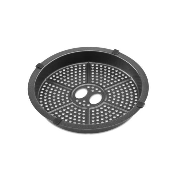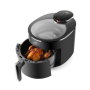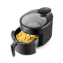 Teplovzdušná fritéza s objemom 5 l a kontrolným oknom v hornom kryte. Fritovacia nádoba s vyberateľným roštom, vnútorné osvetlenie, a 12 programov