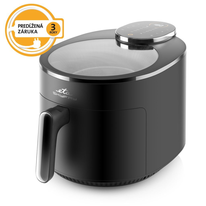 Doprajte si vyprážané dobroty bez výčitiek! Teplovzdušná fritéza ETA Skyfry s praktickým priehľadným horným krytom „smaží“ jedlo pomocou horúceho vzduchu a infračerveného výhrevného telesa, a to rovnomerne zo všetkých strán Vďaka veľkej 5litrovej nádobe s fritovanou hranolky, domáci falafel aj chrumkavú zeleninu – a to s minimom pridaného tuku .