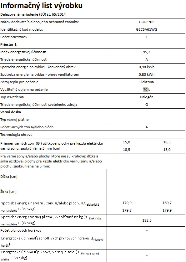 | Spotreba – konvenčné pečenie | 0.98 kWh |