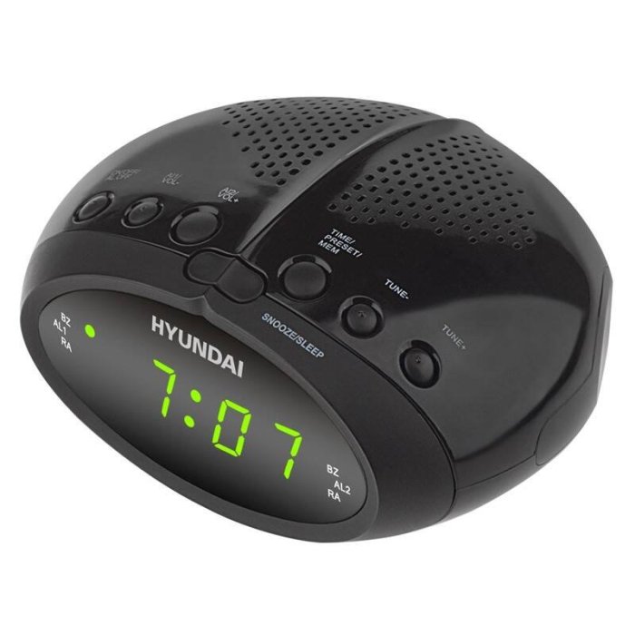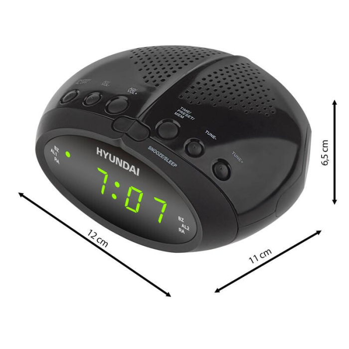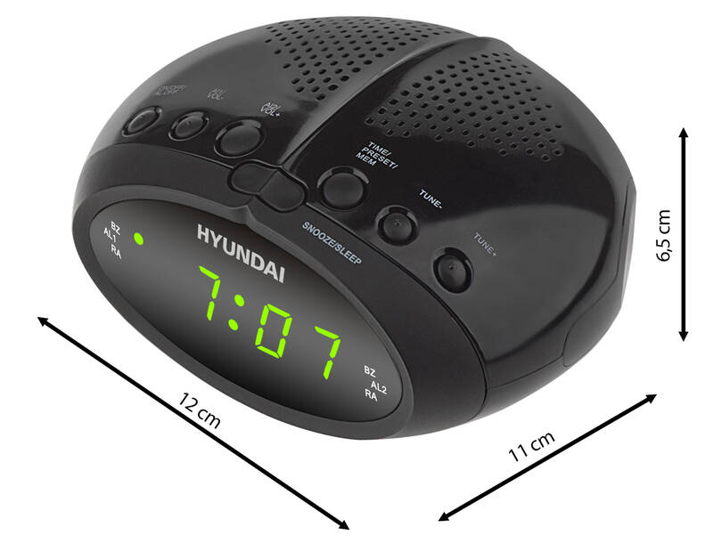 Hyundai RAC 213B je elegantný digitálny rádiobudík s FM tunerom, ktorý vám umožní uložiť až 20 obľúbených staníc. Vďaka dvom nezávislým budíkom si každý môže nastaviť svoj vlastný čas vstávania, či už pomocou tónu alebo rádia. Veľký LED displej zaistí skvelú čitateľnosť aj v tme. Funkcia SNOOZE umožní krátke odloženie budenia a časovač SLEEP sa postará o automatické vypnutie rádia pri zaspávaní. Jednoduché ovládanie a nenápadný dizajn z neho robia ideálny doplnok na každý nočný stolík.