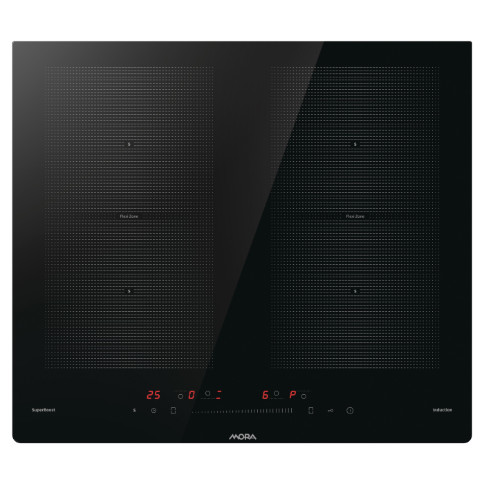 Indukčná vstavaná sklokeramická platňa MORA VDIT 654 C s praktickými zbrúsenými hranami, vďaka čomu ju môžete jednoducho zabudovať aj do roviny s pracovnou doskou, disponuje 4 indukčnými zónami, ktoré zahrievajú len dno nádoby a z dôvodu nízkej teploty povrchu varnej platne nedôjde k pripáleniu a platňa sa veľmi ľahko čistí. Ponúka maximálnu flexibilitu a univerzálnosť, pokiaľ ide o počet, veľkosť alebo tvar riadu – od veľmi malých až po veľké, vrátane ľubovoľných tvarov. Vďaka špeciálnym oktagónovým zónam FlexiZone môžete spojiť dve varné zóny nad sebou a vytvoriť tak priestor pre viacero malých hrncov či jeden veľký hrniec alebo pekáč. Indukčné varenie je nielen rýchle, úsporné, ale aj veľmi bezpečné. Varná platňa disponuje extra výkonom SuperBoost, ktorý zvyšuje intenzitu ohrievania, pre skrátenie času, potrebného na ohrev. S funkciou Timer je možné nastaviť časovač varenia až na 99 minút a varná platňa sa po uplynutí času automaticky vypne. Doplnkom je tzv. kuchynská minútka TimeMinutes, ktorá je nezávislá od varných zóny, takže po uplynutí nastaveného času vás len upozorní špeciálny zvuk. Vďaka detskej poistke teraz nechať deti v kuchyni bez dozoru nebolo nikdy bezpečnejšie, pretože táto funkcia im bráni varnú platňu zapnúť.