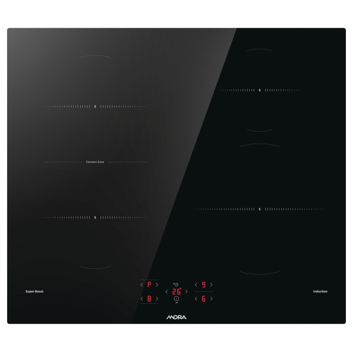 Indukčná vstavaná sklokeramická platňa MORA VDIT 67E C s praktickými brúsenými hranami, vďaka ktorým ju možno jednoducho zabudovať aj do roviny s pracovnou doskou, disponuje jednou prepojenou zónou ConnectZone pre zjednodušenie varenia vo veľkých hrncoch. Dve samostatné ľavé varné zóny nad sebou sa jediným dotykom premostia a spoja do jednej veľkej zóny, čo využijete pri príprave väčšieho množstva jedla a príloh naraz. Jednou z ďalších skvelých funkcií je extra výkon SuperBoost, ktorý zvyšuje intenzitu ohrievania, na skrátenie času, potrebného na ohrev. S funkciou Timer je možné nastaviť časovač varenia až na 99 minút a varná doska sa po uplynutí času automaticky vypne. Doplnkom je tzv. kuchynská minútka TimeMinutes, ktorá je nezávislá od varných zón, takže po uplynutí nastaveného času vás len upozorní špeciálny zvuk. Niektoré nastavenia je možné prispôsobiť podľa vašich preferencií, nastaviť môžete dĺžku a hlasitosť zvukových signálov alebo automatický zámok či celkový maximálny výkon varnej platne.