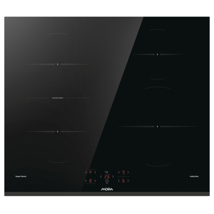 Indukčná vstavaná sklokeramická platňa MORA VDIT 67E FF s praktickými brúsenými hranami, vďaka ktorým ju možno jednoducho zabudovať aj do roviny s pracovnou doskou, disponuje jednou prepojenou zónou ConnectZone pre zjednodušenie varenia vo veľkých hrncoch. Dve samostatné ľavé varné zóny nad sebou sa jediným dotykom premostia a spoja do jednej veľkej zóny, čo využijete pri príprave väčšieho množstva jedla a príloh naraz. Jednou z ďalších skvelých funkcií je extra výkon SuperBoost, ktorý zvyšuje intenzitu ohrievania, na skrátenie času, potrebného na ohrev. S funkciou Timer je možné nastaviť časovač varenia až na 99 minút a varná doska sa po uplynutí času automaticky vypne. Doplnkom je tzv. kuchynská minútka TimeMinutes, ktorá je nezávislá od varných zón, takže po uplynutí nastaveného času vás len upozorní špeciálny zvuk. Niektoré nastavenia je možné prispôsobiť podľa vašich preferencií, nastaviť môžete dĺžku a hlasitosť zvukových signálov alebo automatický zámok či celkový maximálny výkon varnej platne.