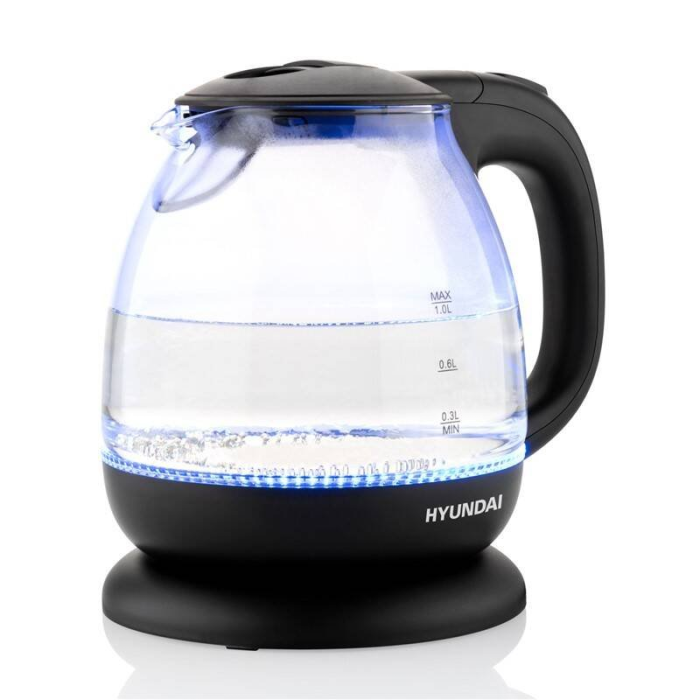 Hyundai HYUVK101 s príkonom 1100W je elegantná rýchlovarná kanvica v štýlovom sklenenom prevedení a s vnútorným osvetlením prináša netradičný prvok pri varení vody.