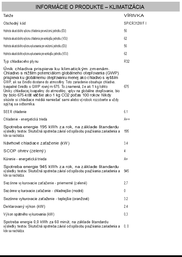 Typ chladiaceho plynu : R32