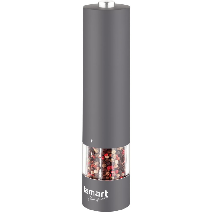Praktický elektrický mlynček na korenie alebo soľ je navrhnutý pre jednoduché a pohodlné používanie v každej kuchyni. Vďaka ergonomickému spracovaniu zo soft plastu sa dobre drží v ruke a jeho moderný dizajn v šedej farbe zapadne do akéhokoľvek interiéru.