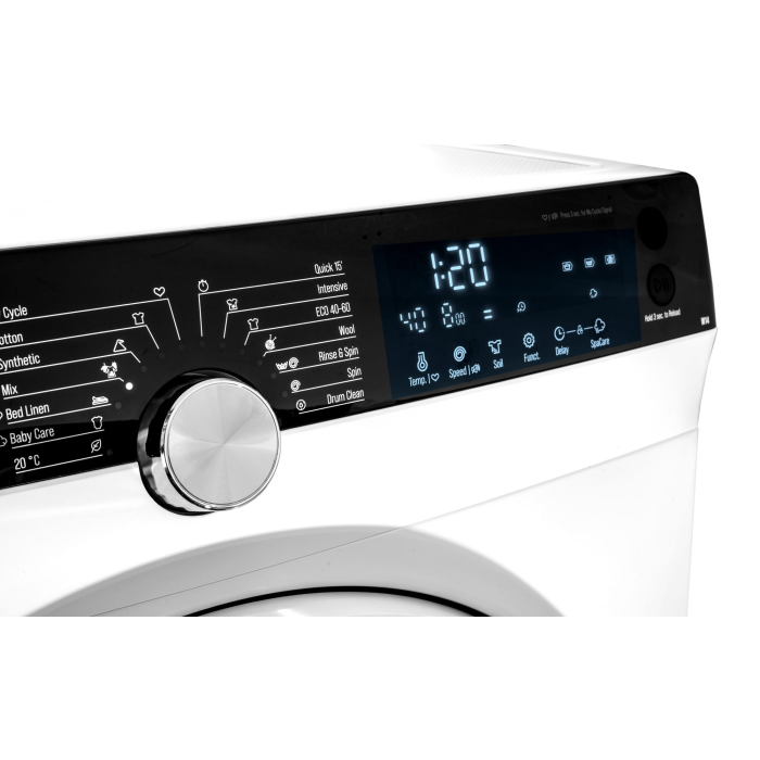 Ovládanie je zabezpečené prostredníctvom dotykového LCD displeja s ukazovateľom zostávajúceho času. K dispozícii je odložený štart až o 24 hodín, detská poistka, možnosť vypnutia zvukových signálov a ochrana proti pretečeniu. Rozmery spotrebiča sú 85 × 59,5 × 53,5 cm (60 cm vrátane dvierok).