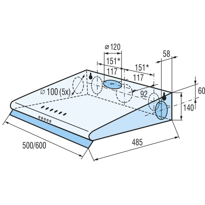 Odsávač pár/7 odťahov/Tlačidlové ovládanie/Výkon odsávača 178 m3/h/3 výkonové rýchlosti/Led osvetlenie 1x 4 W/Biele prevedenie/Šírka 60 cm