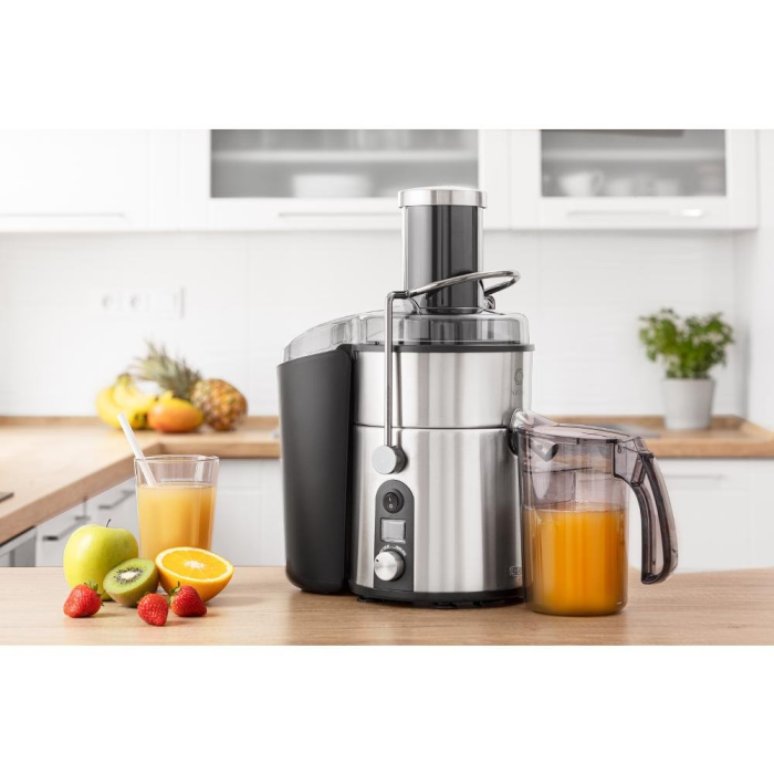 Odšťavovač Sencor SJE 5050SS v nerezovom dizajne prináša vysoko efektívne odšťavovanie, automatické oddelenie drene, nerezové filtračné mikrositko, transparentnú odšťavovaciu misku.