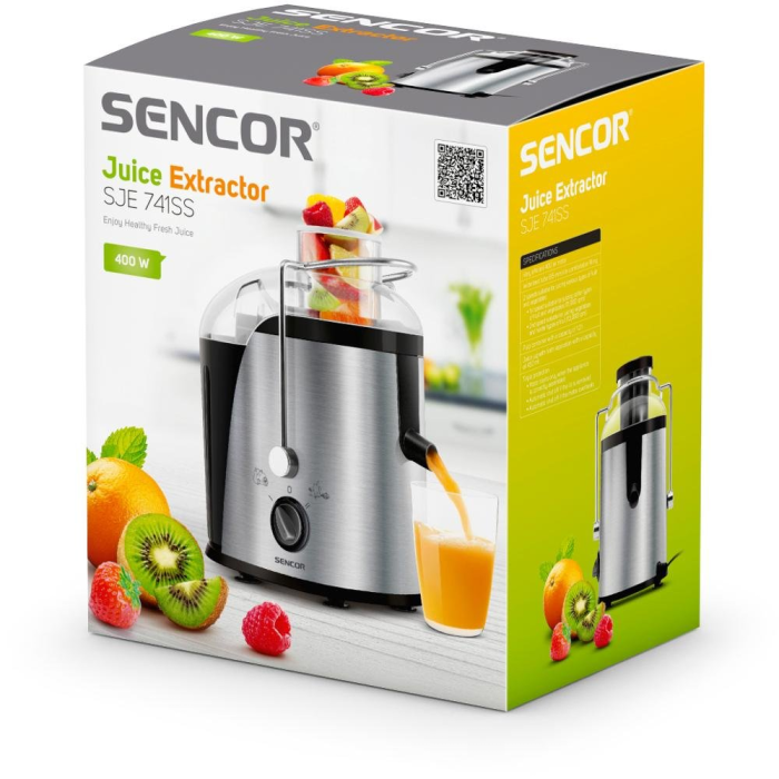 Odšťavovač Sencor SJE 741 SS, s ktorým si ľahko môžete každé ráno pripraviť čerstvý džús plný vitamínov z rôznych druhov ovocia a zeleniny. Výhodou odšťavovača je jeho výkon a 2 rýchlosti.