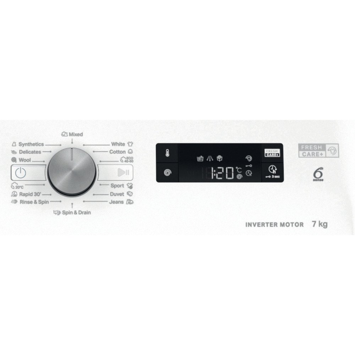 Práčka s predným plnením, kapacita 7 kg, 1200 ot/min, energetická trieda A, hlučnosť 77 dB, FreshCare+, technológia 6. ZMYSEL, zobrazenie zostávajúceho času, Invertorový motor