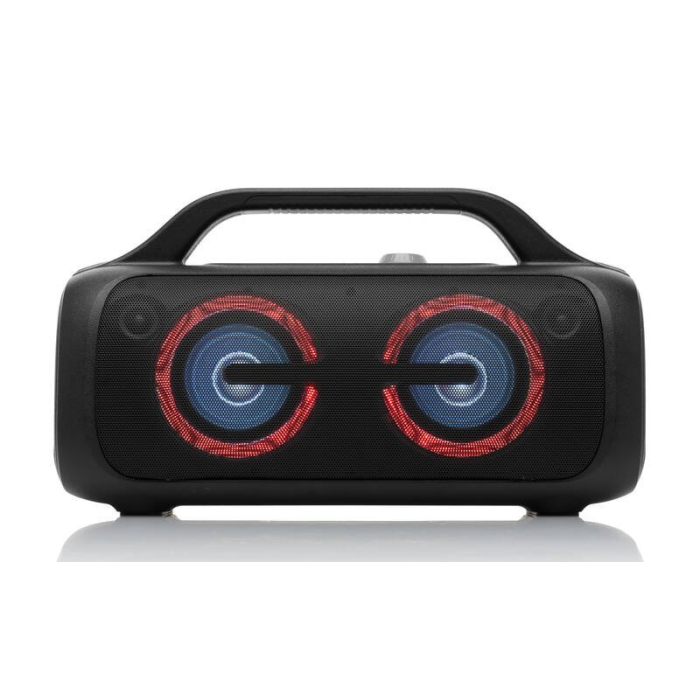Prenosný reproduktor • výkon: 80 W • prehrávanie hudby: hudba cez Bluetooth 5.3, USB flash disk • výdrž batérie 16 hod. • vstupy/výstupy: USB, AUX IN vstup