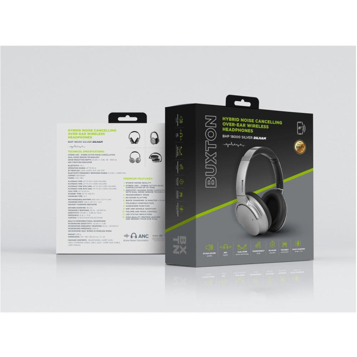 Bezdrôtové slúchadlá BUXTON BHP 18000 DILHAM vám zaistia počúvanie hudby v štúdiovej kvalite, a to vďaka pokročilej funkcii Hybrid ANC na aktívne potlačenie hluku v okolí až do hlasitosti 30 dB. Prepínať hudbu, podcast alebo upravovať hlasitosť môžete ľahko so 4 multifunkčnými tlačidlami. Nie je tak nutné vyberať telefón z vrecka.
