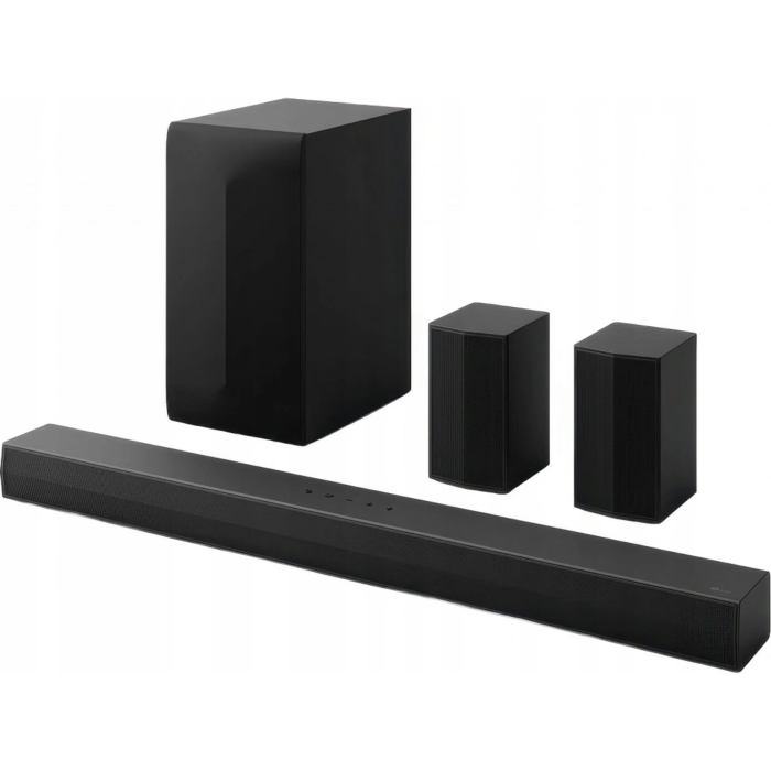 LG SoundBar s celkovým výkonom 440 W, 5,1k reproduktorový systém, zadné bezdrôtové reproduktory v balení, spracovanie zvuku AI Sound Pro, široká škála nastavení zvuku, bezdrôtové pripojenie k TV - Bluetooth, optický vstup, HDMI 1x vstup / 1x výstup, SIMPLINK