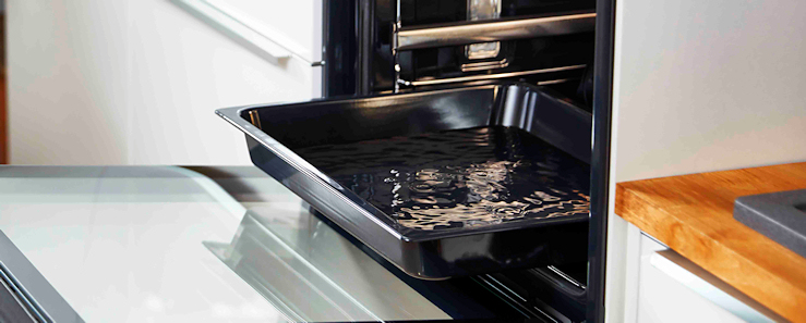 Pokiaľ po pečení zostalo v rúre silnejšie znečistenie, para s ním rýchlo zatočí. Stačí, keď do rozohriatej rúry vložíte hneď po príprave pokrmu plech s vodou a zapnete čistiaci program Eco Clean. Po 30 minútach sa nečistoty uvoľnia a akonáhle rúra vychladne, ľahko ich zotrite handričkou.