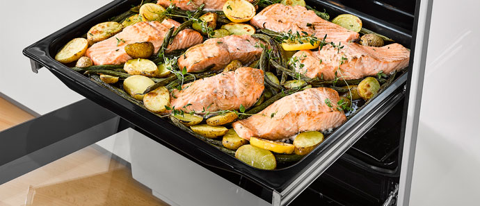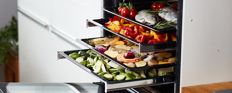 Hravo pripravíte hostinu pre celú rodinu. Pečená morka alebo 3 rôzne chody pečené naraz na niekoľkých plechoch. V rúre s objemom 70 litrov sa vždy nájde miesto na všetko, čo máte radi.