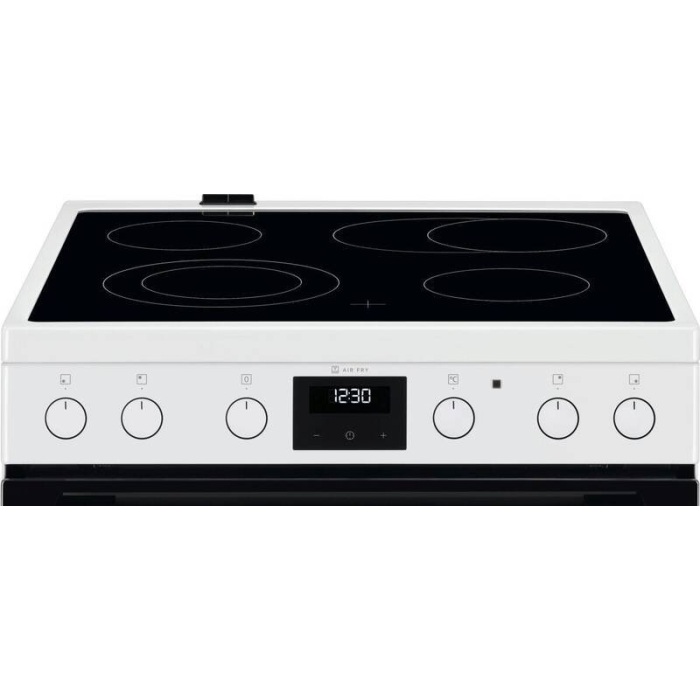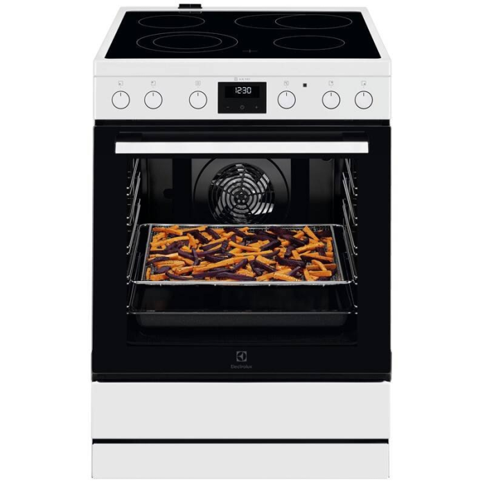 Sklokeramický sporák, Energetická trieda A, Objem rúry: 73 l, Sklokeramická varná doska, 4 varných zón, biela farba, Displej:, Gril, Výška: 85 cm, Šírka: 60 cm, Hĺbka: 60 cm