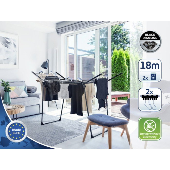 18 m sušiacej plochy = až 2 práčky bielizne, výška sklápacích bočníc 100 cm