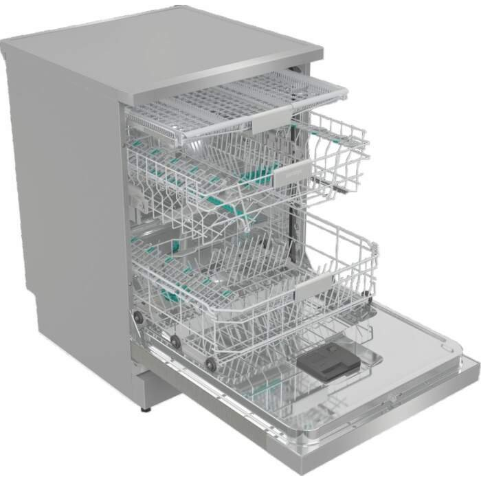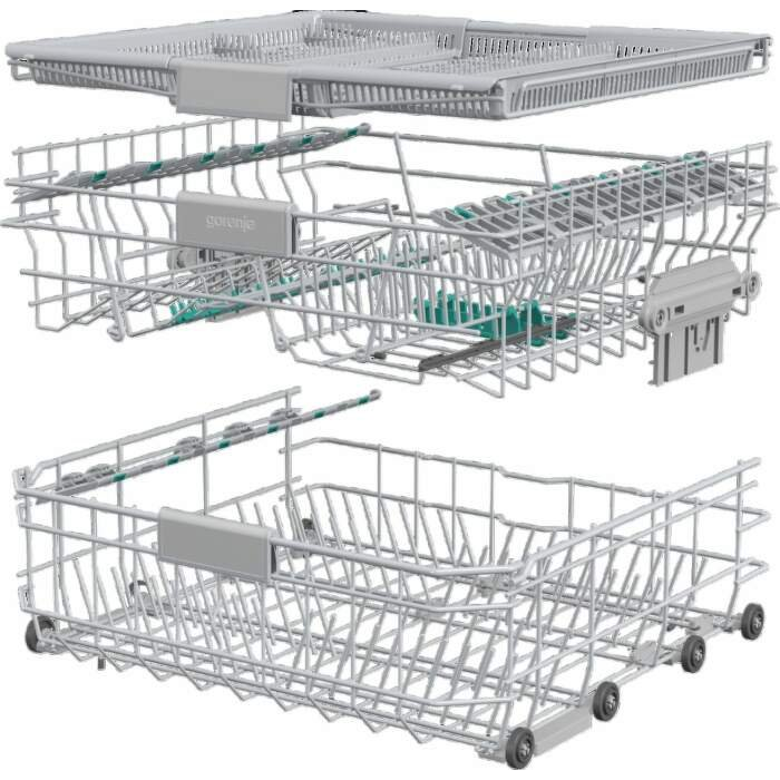 Koše sú vybavené zvýraznenými pohyblivými prvkami a prispôsobiteľným rozložením koša pre jednoduché nakladanie. Jednoduchý dvojúrovňový systém nastavenia koša umývačky riadu Gorenje GS673A67X, vám umožní umiestniť aj najväčšie hrnce. Stojan na taniere sa dá jednoducho zložiť.