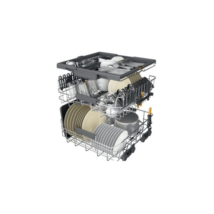Výhodou tejto vstavanej umývačky riadu je o 10 % väčší* vnútorný priestor pri zachovaní rovnakých vonkajších rozmerov. Trieda energetickej účinnosti D