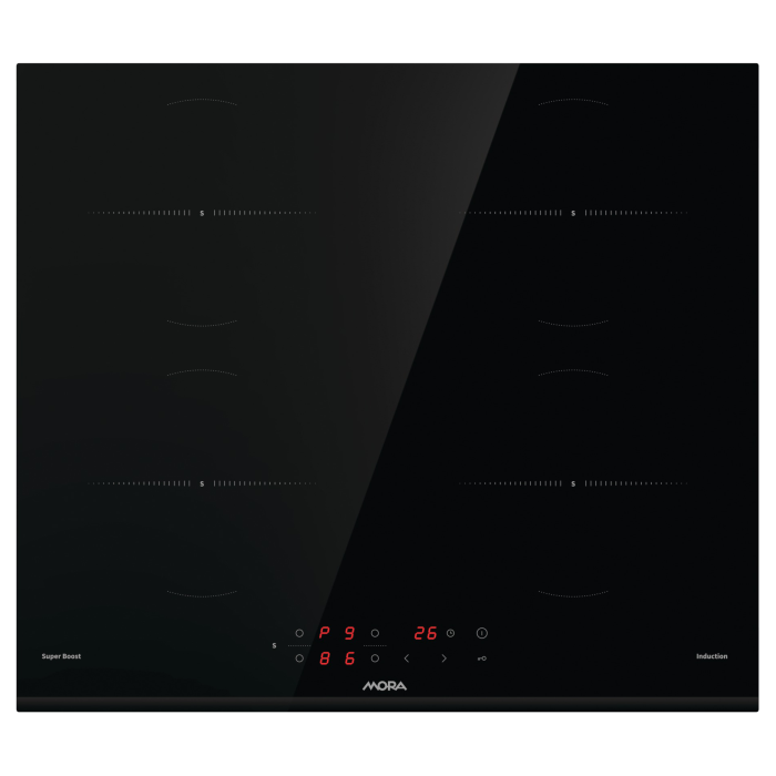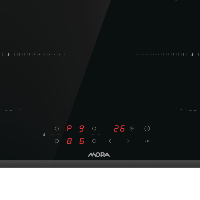 Indukčná vstavaná sklokeramická platňa MORA VDIT 631 FF so skosenou prednou fazetou disponuje 4 indukčnými zónami, ktoré zahrievajú len dno nádoby a z dôvodu nízkej teploty povrchu varnej platne nedôjde k pripáleniu a platňa sa veľmi ľahko čistí. Indukčné varenie je nielen rýchle, úsporné, ale aj veľmi bezpečné. Varná platňa disponuje extra výkonom SuperBoost, ktorý zvyšuje intenzitu ohrievania, pre skrátenie času, potrebného na ohrev. S funkciou Timer je možné nastaviť časovač varenia až na 99 minút a varná platňa sa po uplynutí času automaticky vypne. Doplnkom je tzv. kuchynská minútka TimeMinutes, ktorá je nezávislá od varných zóny, takže po uplynutí nastaveného času vás len upozorní špeciálny zvuk. Vďaka detskej poistke teraz nechať deti v kuchyni bez dozoru nebolo nikdy bezpečnejšie, pretože táto funkcia im bráni varnú platňu zapnúť.