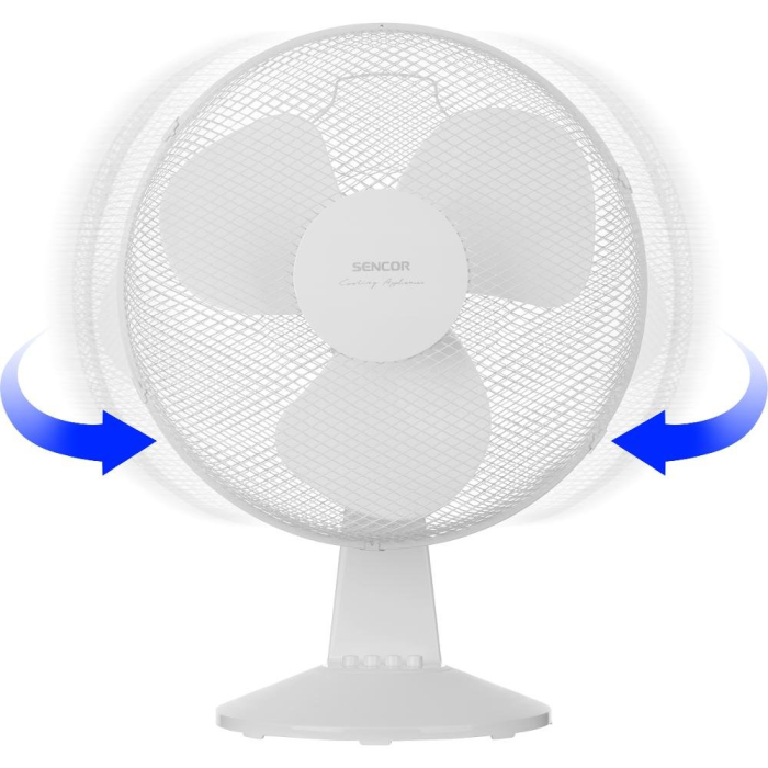 Stolný ventilátor Sencor SFE 4010WH, horizontálna oscilácia v uhle 90°, nastaviteľný uhol sklonu, 3 rýchlosti, priemer lopatiek 40 cm