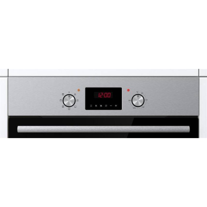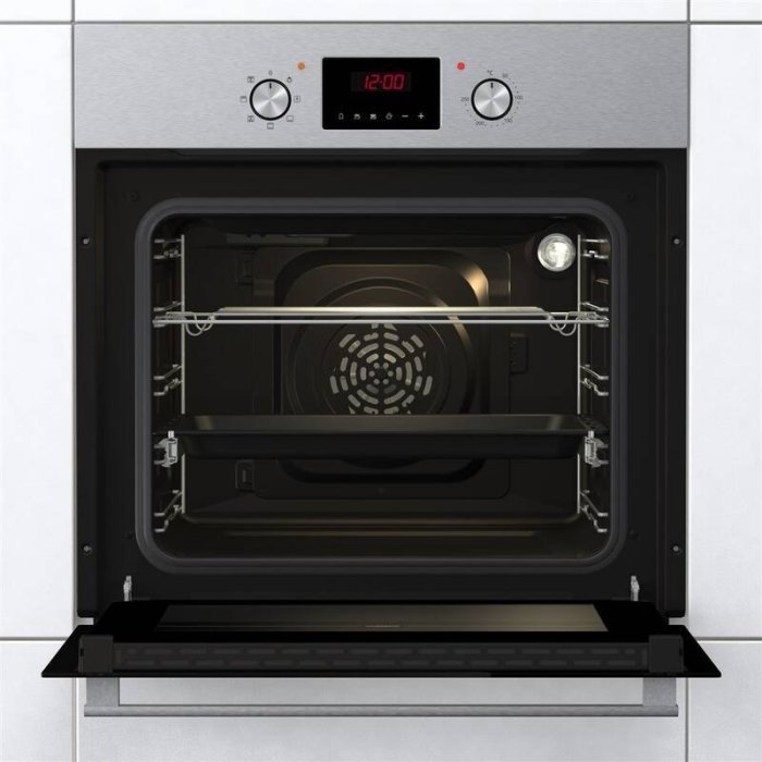 Elektrická rúra samostatná / Klasická rúra s ventilátorom / 6 funkcií / 61 l / Zasúvacie gombíky / Výsuvné teleskopické rošty (1 úroveň) s klik systémom / Nerez / Energetická trieda A