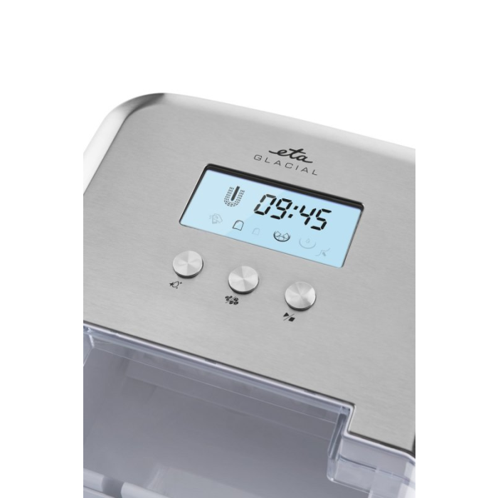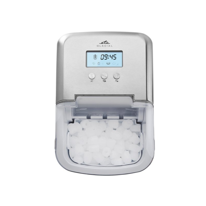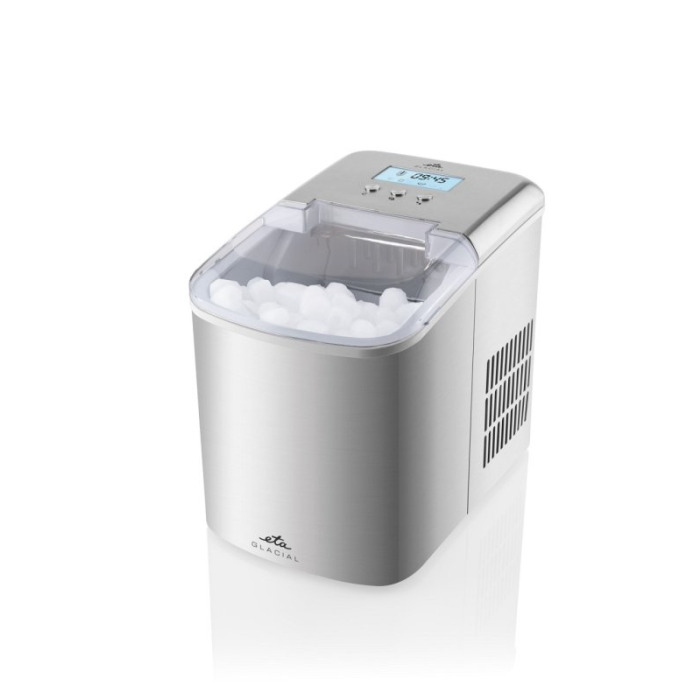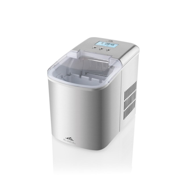 Výrobník ľadu ETA Glacial má veľkú 2,1 l nádobu na vodu, ktorá bude stačiť na výrobu ľadu na každý večierok, párty, ale aj na schladenie fľaše vína na večer. Zásobník na ľad má kapacitu 600 g a za 24 h dokáže vytvoriť až 15 kg ľadu.