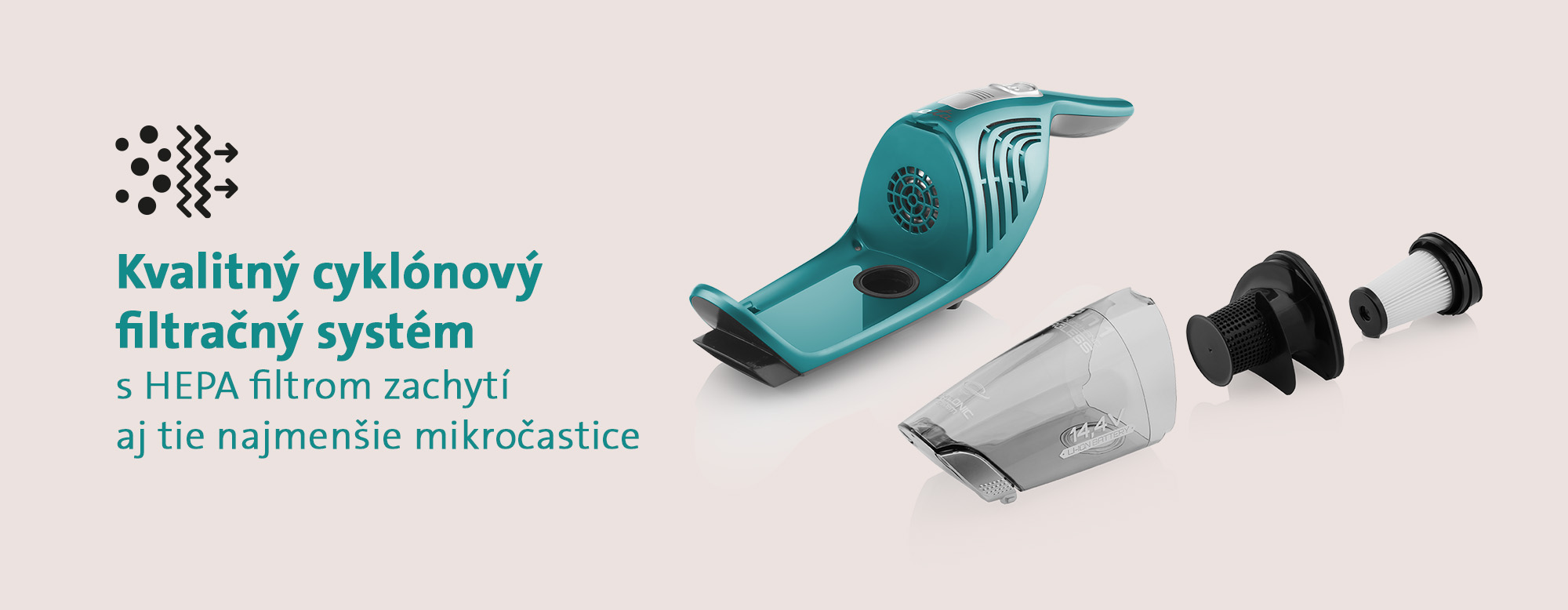 Vďaka dvom úrovniam sacieho výkonu sa vysávač prispôsobí každému povrchu. Na koberce určite využijete silnejší výkon, na drevené podlahy bude efektívnejší ten nižší. Cyklónový filtračný systém s HEPA filtrom vysávanie ešte zefektívni a nečistoty sa zbierajú do nádoby o objeme 0,55 l.