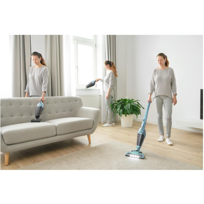 Bezdrôtový tyčový vysávač 3 v 1 s odnímateľnou ručnou jednotkou, objem nádoby na prach 0,5 l, typ batérie Li-Ion 2 000 mAh, hladina hluku 79 dB, prevádzkový čas až do 45 minút