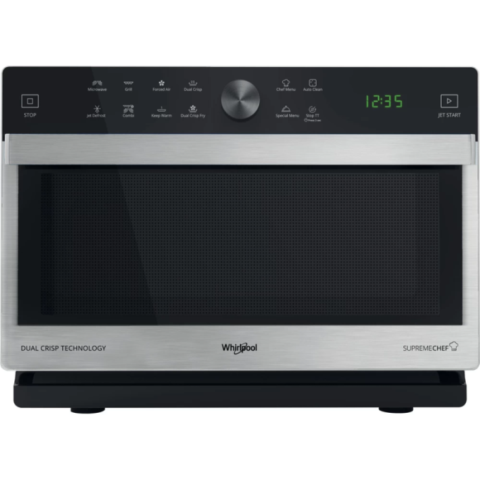 Vychutnajte si bezkonkurenčnú chrumkavosť a lahodnú jemnosť vo vnútri vďaka technológii DualCrisp. Exkluzívna technológia spoločnosti Whirlpool. Duálna distribúcia mikrovĺn úplne obklopí jedlo a rovnomerne ho pripraví zo všetkých strán.
