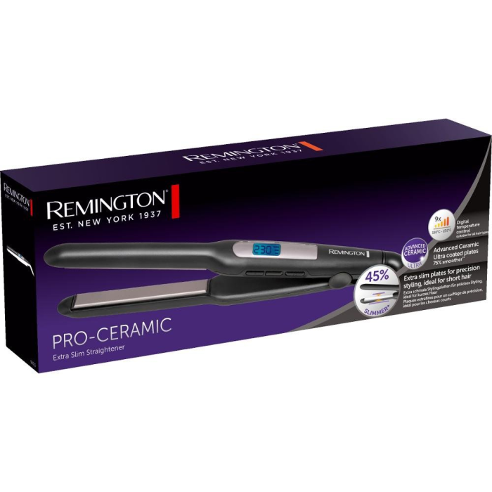 Žehlička na vlasy Remington, extra úzke žehliace doštičky, 9 možností nastavenia teploty od 150 do 230 °C, ultrarýchle zahriatie, otočný kábel